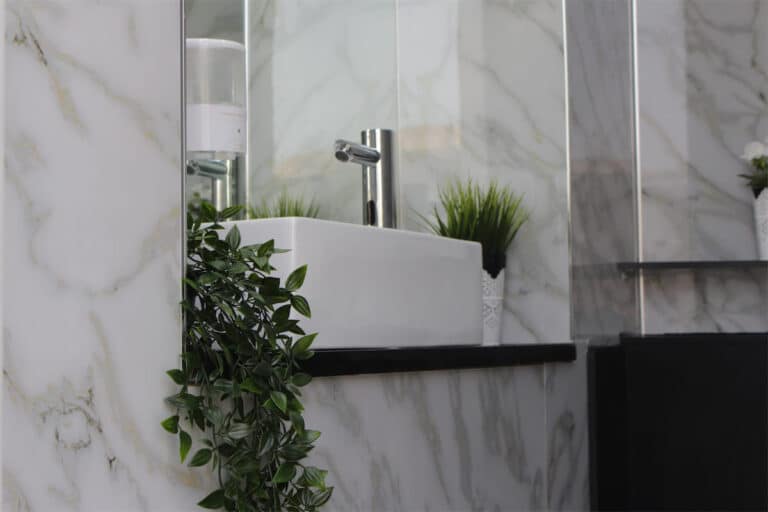 הקירות מצופים שיש בהיר בשילוב ציפוי עץ , רצפה דמוית פרקט עץ, ברזים מודרניים (אוטומטיים כמובן). התאים ממזוגים בהם מושמעת מוסיקת רקע נעימה.